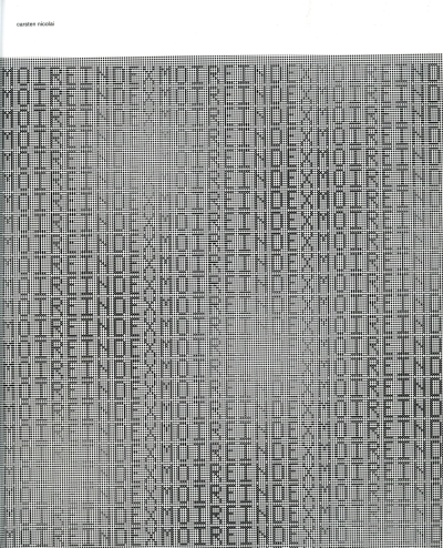 In this book, Carsten Nicolai explores the moiré effect — a phenomenon that can be created by the overlay of lines. Although such interference patterns are mostly considered to be unwanted side effects, they are actually extremely interesting from an aesthetic perspective. This first extensive visual compendium of these patterns is accompanied by a CD that contains not only the featured moirés as digital files, but also individual elements that can be used to create an almost endless amount of new overlays.