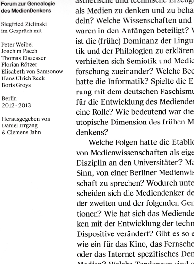 Forum zur Genealogie des MedienDenkens II. Siegfried…